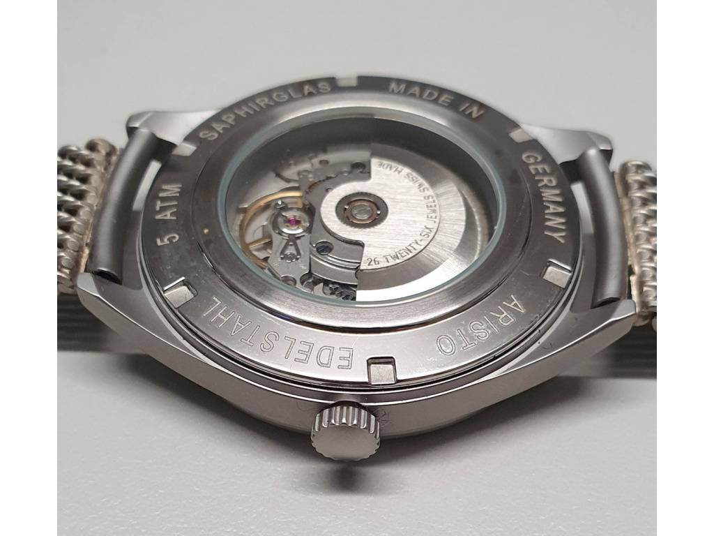 Historie německých hodinek Aristo sahá až do roku 1907. Za tři následující generace hodinářů, do roku 1992, bylo vyrobeno přes jeden milion kusů hodinek. Kromě osvědčeného švýcarského automatického kalibru ETA 2824-2 v hodinkách najdete quartzové švýcarské strojky značky Rondo. Aristo nabízí celou škálu stylů, nicméně milovníci leteckých hodinek zde objeví působivou paletu typů a velikostí navigátorských ciferníků. Aristo pracuje se safírovým sklíčkem i titanovým pouzdrem. Jde o kombinaci pečlivě vybraných komponentů a materiálů s precizní německou hodinařinou.