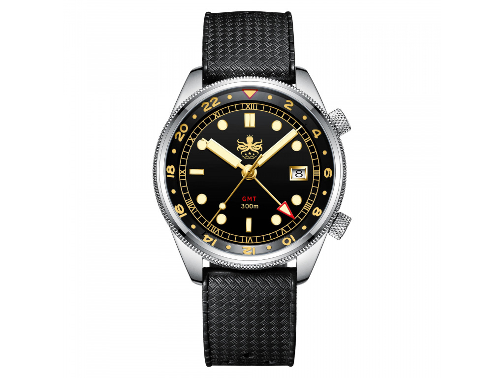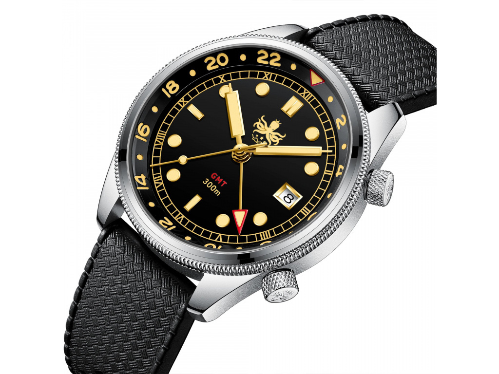 Provedení hodinek PHOIBOS Diver je založené na masivním ocelovém tahu, řemínku s překlápěcí sponou a bezpečnostní páčkou na boku. Fenomenální design doplňuje klasické zobrazení času – centrální vteřinovka a datumovka na pozici 3. Jednoduše, ve vodě nebo na souši – při jakékoli aktivitě budete vypadat dobře.