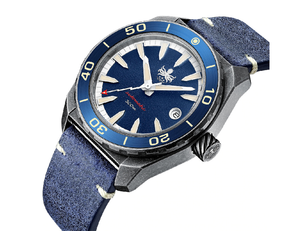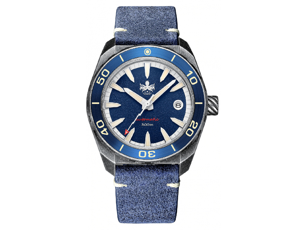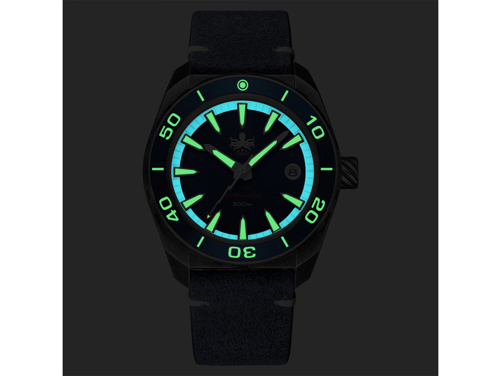 PHOIBOS Diver jsou neobyčejné potápěčské hodinky – ve vodě i mimo ni fungují perfektně. Můžete s nimi plavat, potápět se nebo provozovat jakékoli jiné vodní sporty. Mají voděodolnost 30 ATM (tzn. vydrží 300 m pod vodou) a překvapí vás mimořádnou luminiscencí Super-Luminova. Díky ní je čas jasně čitelný i při potápění v jeskyních nebo ve větších hloubkách.