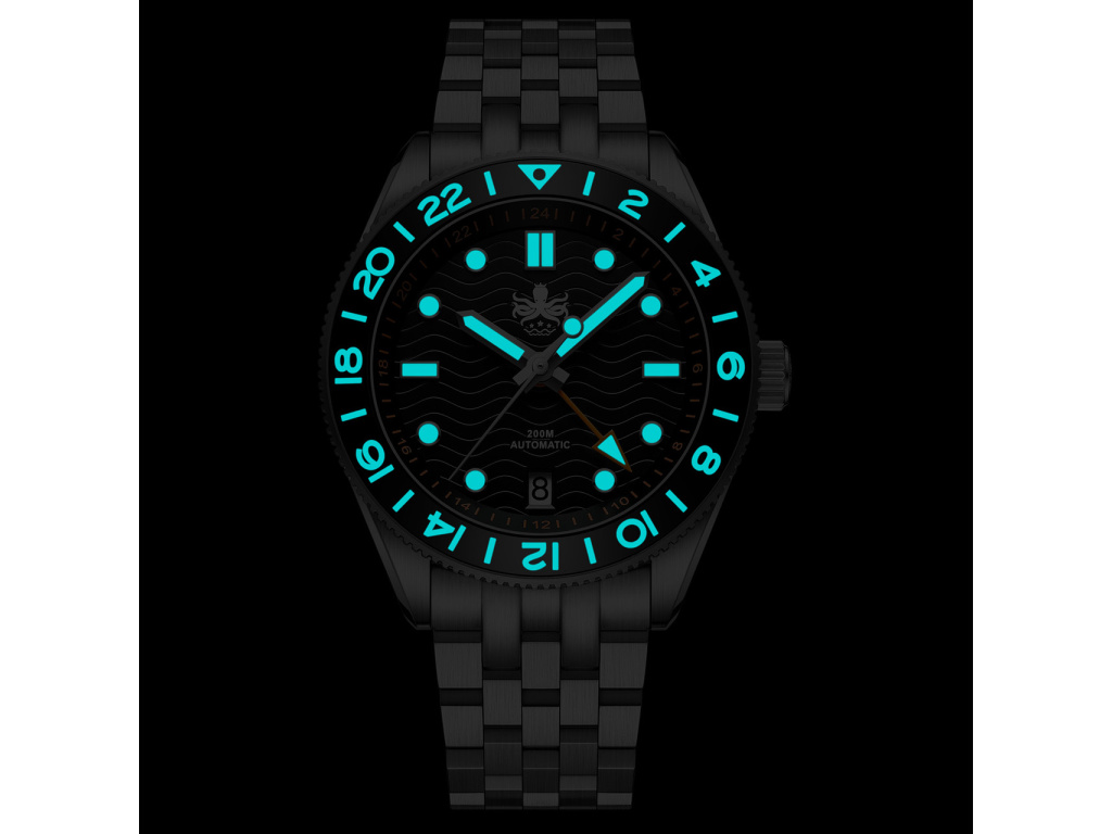 ? Luminiscence: | 15 vrstev Super-LumiNova tmavě modrá na ručičkách a indexech, BGW9 na označení rámečku |