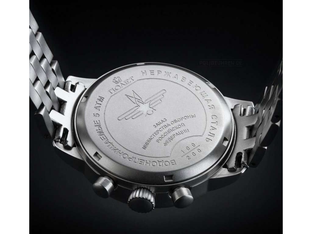 Poljot Kirova 1MWF Chronograf 3133 Aviator ✨ 200 kusů + Dárek k objednávce. Vybrat si můžete z: Vystěžejkovač, Antistatická utěrka, Kovový zkracovač ocelového tahu