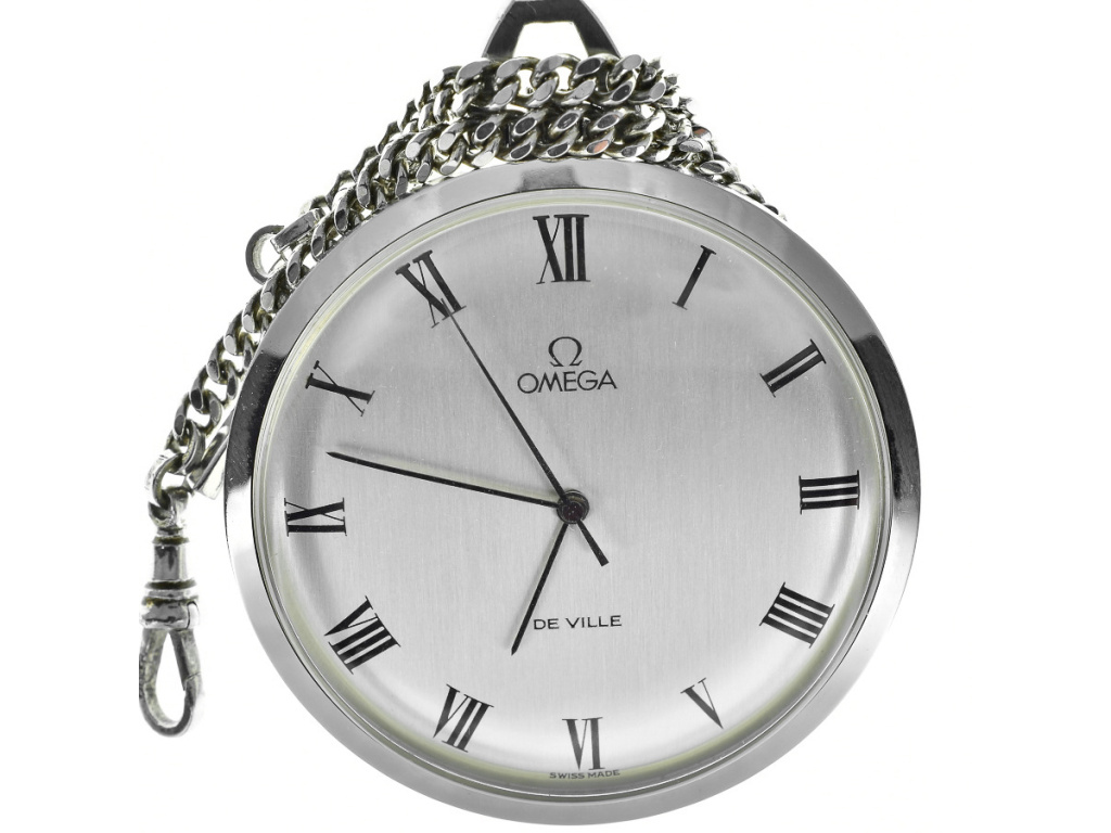 Ultratenké jednoplášťové ocelové kapesní hodinky Omega De Ville z let 1972- 1974 + Dárek k objednávce