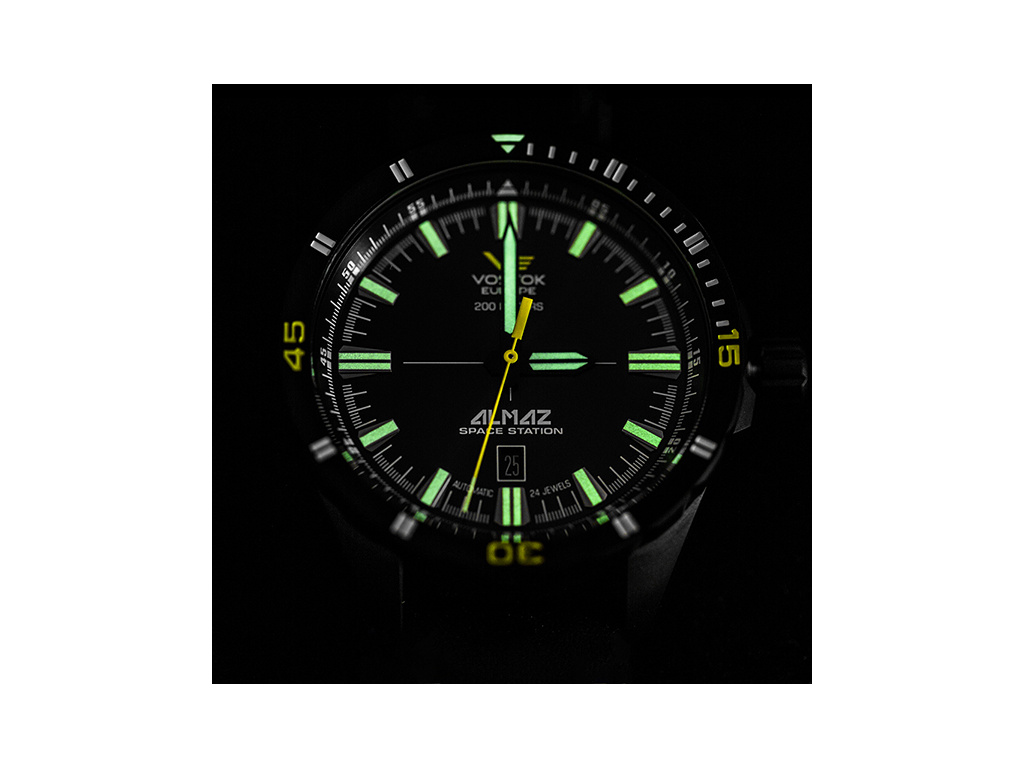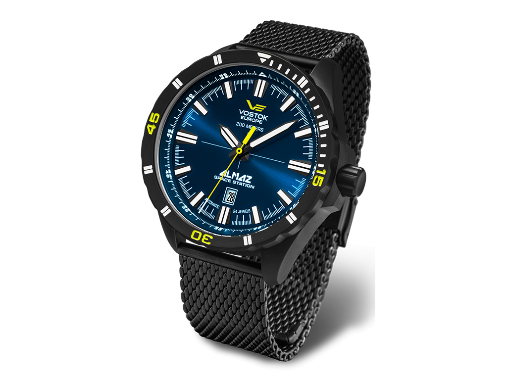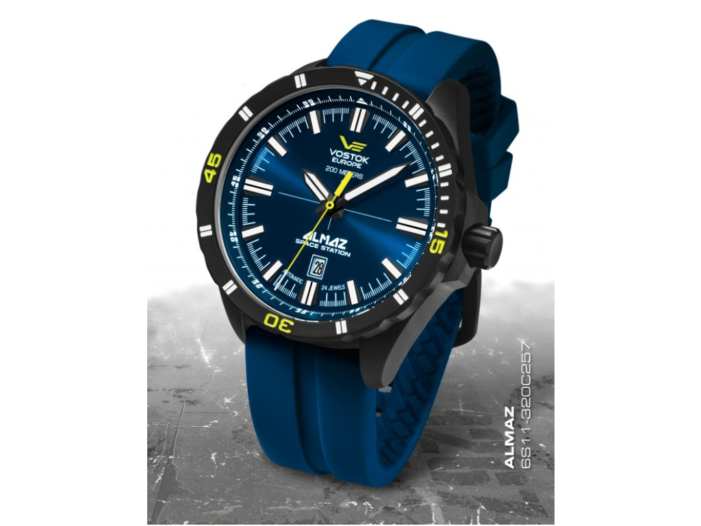 Výrazné ocelové pouzdro ukrývá automatický strojek Seiko NH35. Modelová řada ALMAZ Space station je věnována první kosmické stanici ALMAZ, která byla vyvinuta v 60-tých létech 20. století.