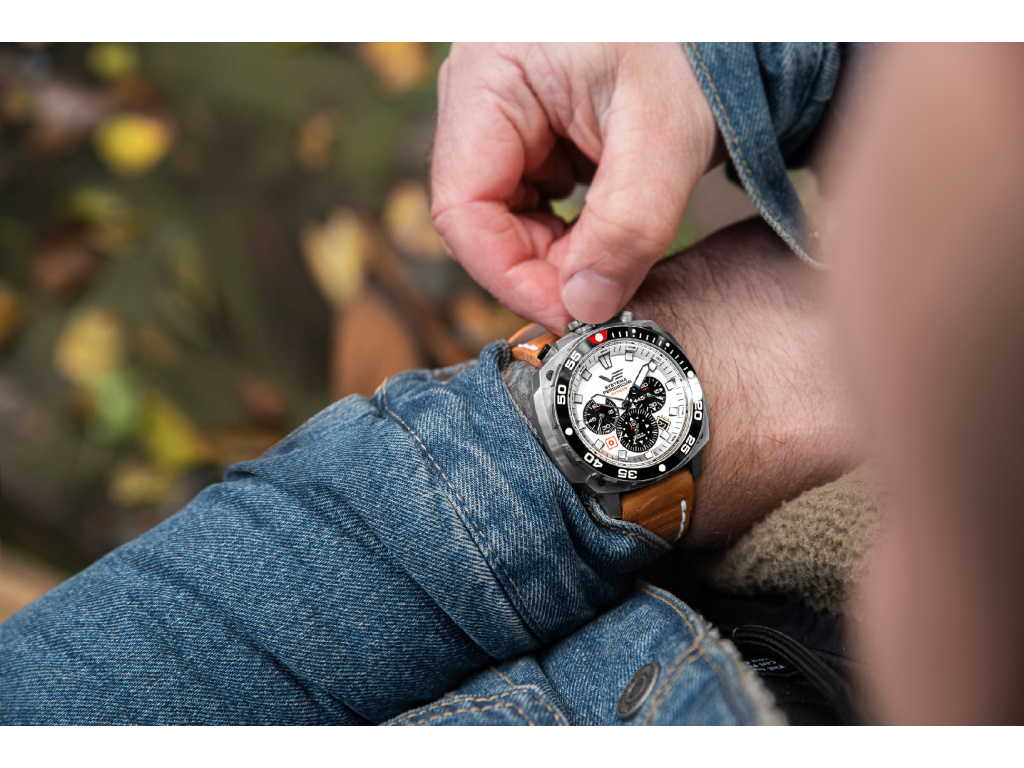 ? Materiál řemínku: | Hodinky se dodávají na červeném silikonovém řemínku s náhradním hnědým koženým řemínkem s funkcí rychlé výměny. |